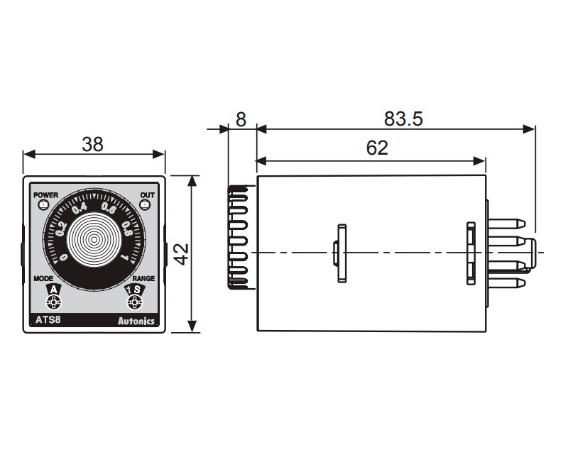 | Setting range | 0.3 to 3 sec, 3 to 30 sec, 0.3 to 3 min, 3 to 30 min, 0.3 to 3 hour, 3 to 30 hour |