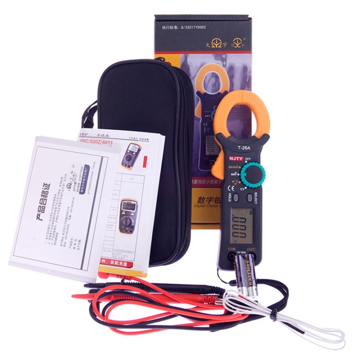 NJTY (T-26A) Digital Clamp multimeter, Ohm, AC ampere, AC/DC Volt, Temperature Tester (Electric Meter Resistance Diode)